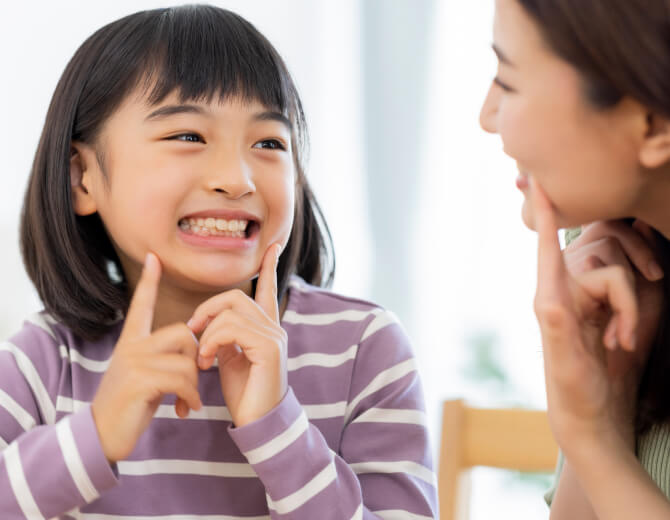 歯並びや噛み合わせの問題を早期に発見し、適切な矯正装置を使用して治療します。