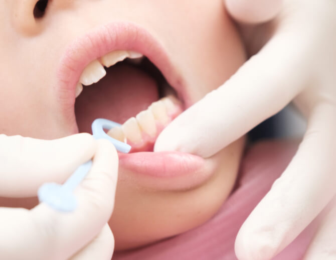 歯の表面にフッ素を塗布し、虫歯を予防します。