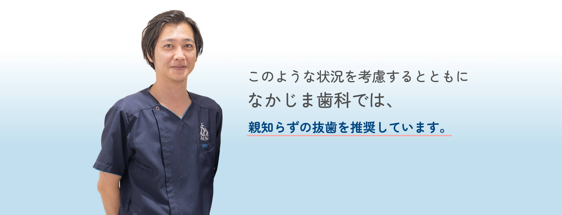 親知らずが原因で他の歯に影響を与える場合や、痛みや感染の原因になっている場合、または正しい位置で生えてこない場合に抜歯が必要です。